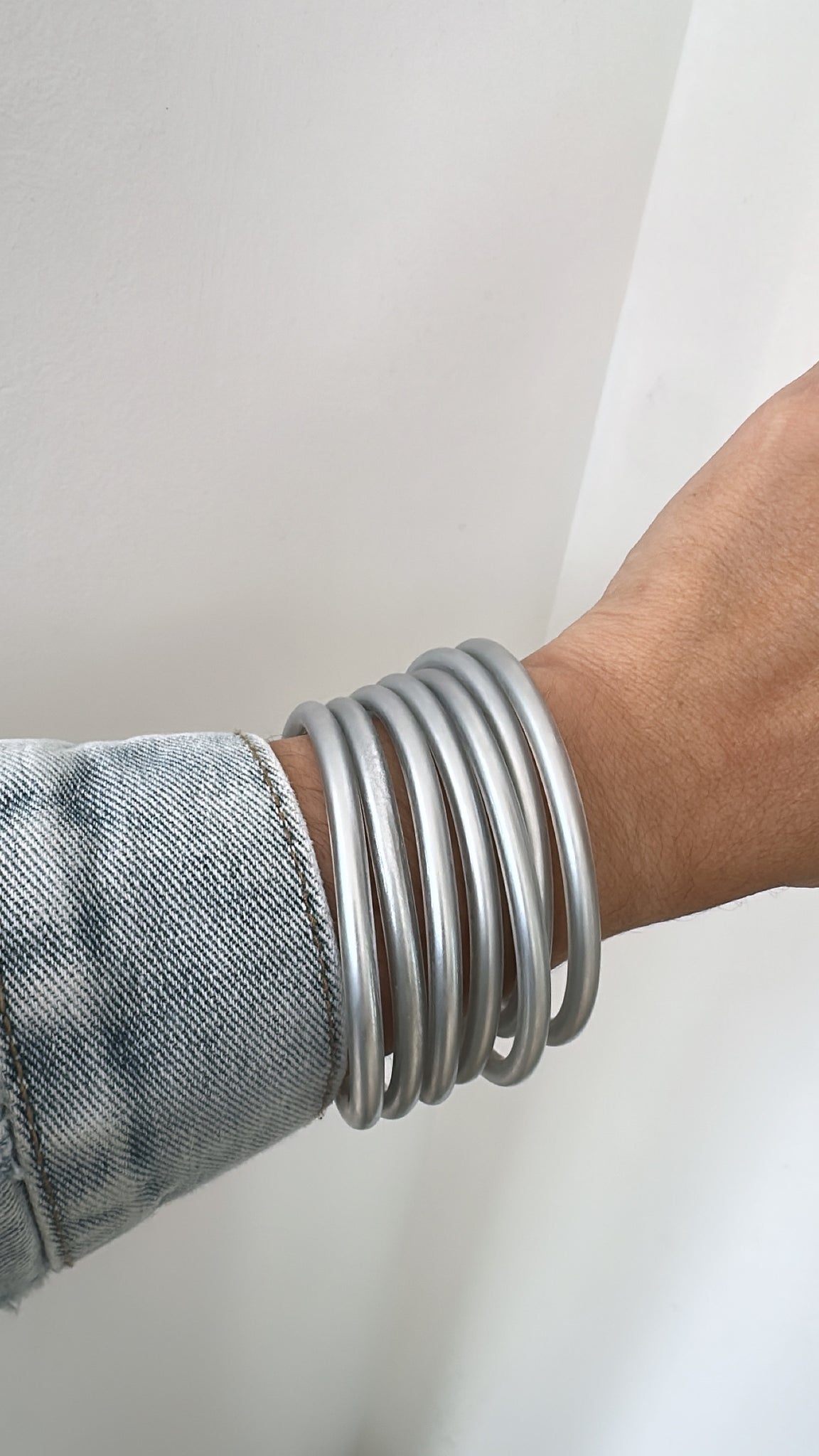 Silver mate color bracelets.